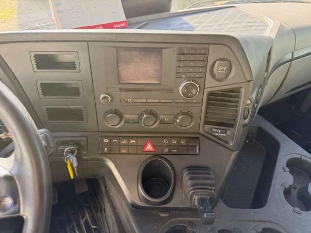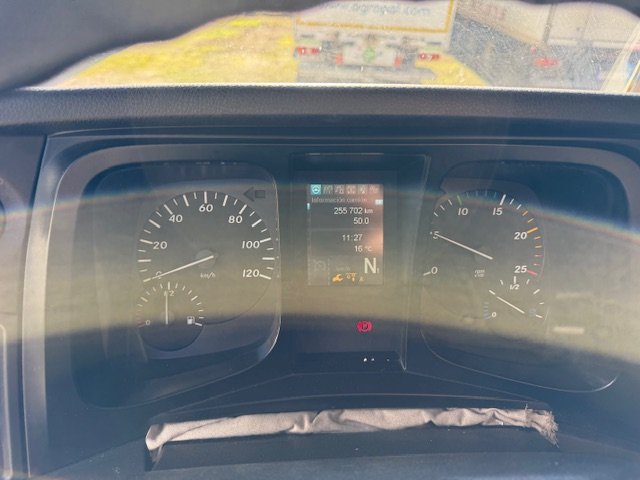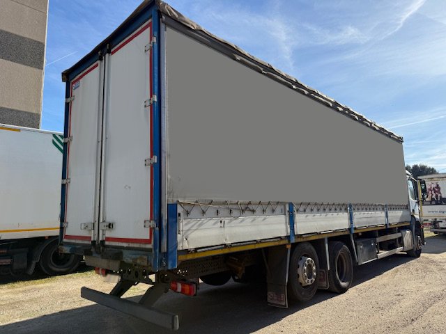 | Caracteristicas: | Vehiculo de 26000 kg de mma con carga util de 14500 kg- normativa medioambiental euro 6 -etiqueta verde – tracció 6×2 -3ER EJE ELEVABLE Y DIRECCIONAL – caja de velocidades automatica – suspension ballesta trasera – equipado con caja tauliner de toldos laterales correderos – puertas de libro traseras ( 9700 mm longitud caja) , climatizador , etc |