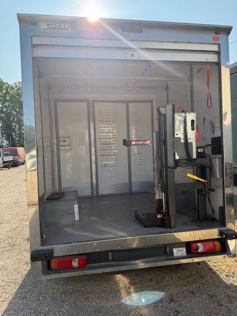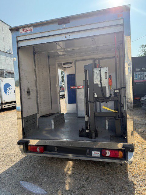 vehiculo de 3500 kg. de mma con carga util de 1000 kg. – conduccion carnet b – normativa medioambiental euro 6 – etiqueta verde – motor de 130 cv. – caja de velocidades manual – equipado con caja cerrada con parte delantera frigorifica multitemperatura y persiana enrollable trasera – equipo de frio zanotti modelo z38s y plataforma elevadora interior de 150 kg. de elevacion para palets especificos , climatizador , etc.